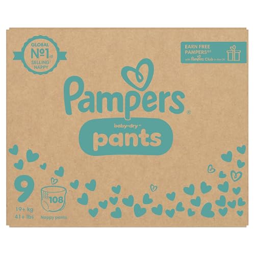 Pampers Baby-Dry luierbroek maat 9, 108 luiers, 19 kg +, maandpakket, 360° pasvorm om gaten en lekken te voorkomenPampers 108 stGratis verzending€ 0,763