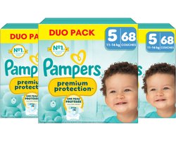 Pampers Premium Protection maat 5 - 204 stuks (3 x 68 luiers) - Inclusief een toplaag om vocht bij de huid weg te houden - Navelvriendelijke pasvorm (tot maat 3) - Zachte en uitrekbare zijkanten