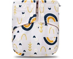 BonBini's®- wasbare luier - BonBini´s luiers - wasbare luier Blue Yellow Rainbow 3-15 kg - luierbroekje - dubbele antilek preventie - zwemluier drukknoopjes en verstelbaar maat S, M, L maat 1 t/m 5 -
