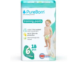 Luierbroekjes Maat 6 (15+ kg) - 18 stuks, Ultra Zacht en Huidvriendelijk, 12 uur Droge Bescherming, Dag en Nacht, Dermatologisch Getest, Vegan en Duurzaam