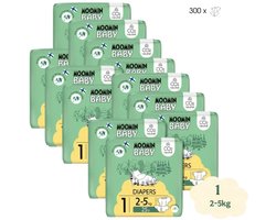Moomin Baby Eco Wegwerpluiers - 300 Stuks - Maat 1 - 2 t/m 5 kg – Hypoallergeen – Gevoelige Huid – Parfumvrij - MaandBox
