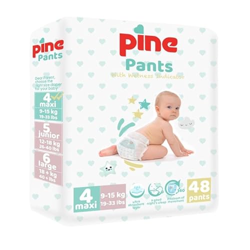 Pine Babyluierbroek met vochtindicator, wegwerp-broekluiers voor baby's, huidvriendelijk en super absorberend (maat 4, stuk, 48)