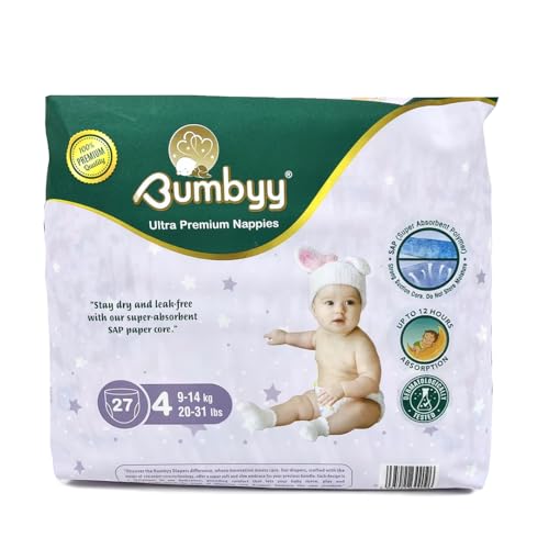 Bumbyy Leak-Proof Baby Nappies Maat 4 - Ultra-Absorberende Zachte & Dunne Pasgeboren Nappies voor Gevoelige Huid, 27 Babydiapers, Hypoallergeen en Dermatologisch Getest 12 uur Dry Nappy 9-14 kg/20