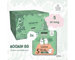 Moomin Baby Eco Wegwerpluiers - 120stuks - Maat 5 - 10 t/m 16 kg - Milieuvriendelijk - Anti-allergisch - CO2 Neutraal