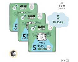 Muumi Baby Eco Luierbroekjes - Maat 5 - 114 Stuks - 10-15 kg - Hypoallergeen - Gevoelige Huid - Parfumvrij
