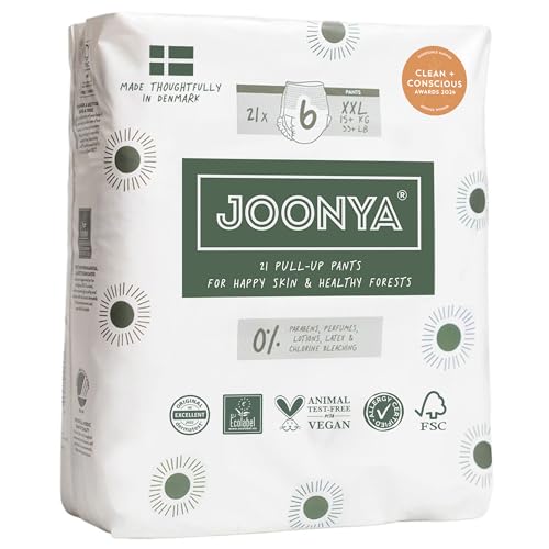 Joonya Babyluiers maat 6 XXL, 1 zak à 21 stuks, niet giftig, milieuvriendelijk, ultradun, voor nachtgebruik, gemaakt in Denemarken