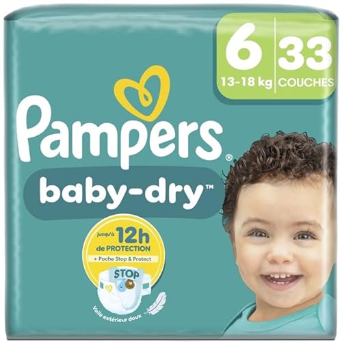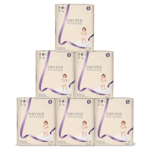 DRYPER Couches pour bébé taille 6 (16 kg +), couches ultra minces, douces et hypoallergéniques pour peaux sensibles, protections anti-fuites 3D et protection contre les fuites 12H, indicateur