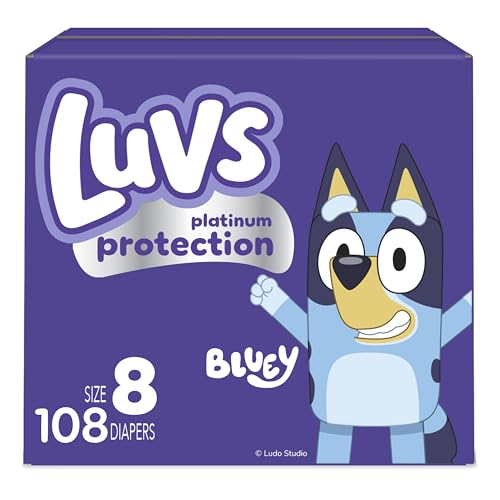 Luvs Maat 8 Baby Luiers, Platinum Protection Bluey Luiers voor Dag & Nacht, Maat 8, 108 Count