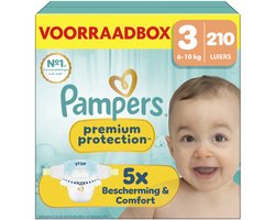 Pampers heeft luiers in verschillende soorten en maten. Een van die soorten is Pampers Premium Protection. Die luiers zorgen ervoor dat je baby droog blijft en zorgeloos kan rondlopen of -kruipen. Want doordat de luier drie absorberende lagen heeft, wordt het vocht goed verdeeld en zal je baby dus droog blijven. Bovendien zijn de Premium Protecion luiers gemaakt van ultra zacht materiaal waardoor het prettig en comfortabel aanvoelt voor je kind. De luier heeft ook een super handige urine indicator waardoor je makkelijk kan zien of de luier al ververst moet worden of niet. Die indicator zit wel alleen in luiers kleiner dan maat 6. De luier heeft daarnaast ook rekbare zijkanten waardoor je kind zich goed kan bewegen. Dankzij Pampers promoties op onze website kan je ook nog eens goedkope Pampers scoren!