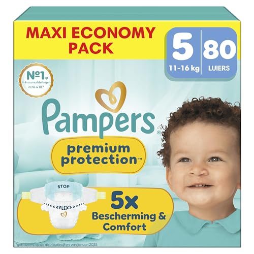 Pampers heeft luiers in verschillende soorten en maten. Een van die soorten is Pampers Premium Protection. Die luiers zorgen ervoor dat je baby droog blijft en zorgeloos kan rondlopen of -kruipen. Want doordat de luier drie absorberende lagen heeft, wordt het vocht goed verdeeld en zal je baby dus droog blijven. Bovendien zijn de Premium Protecion luiers gemaakt van ultra zacht materiaal waardoor het prettig en comfortabel aanvoelt voor je kind. De luier heeft ook een super handige urine indicator waardoor je makkelijk kan zien of de luier al ververst moet worden of niet. Die indicator zit wel alleen in luiers kleiner dan maat 6. De luier heeft daarnaast ook rekbare zijkanten waardoor je kind zich goed kan bewegen. Dankzij Pampers promoties op onze website kan je ook nog eens goedkope Pampers scoren!