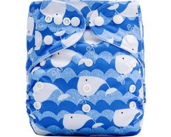 Duurzame luiers - Wasbare luier met inlegger - Herbruikbare luier - Pocket luier - 3-15 kilo - Blauw walvis